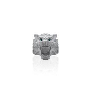 Anillo forjado en Acero Premium 316L en forma de tigre con acabado mate, es una pieza única de joyería que está diseñada para destacar.