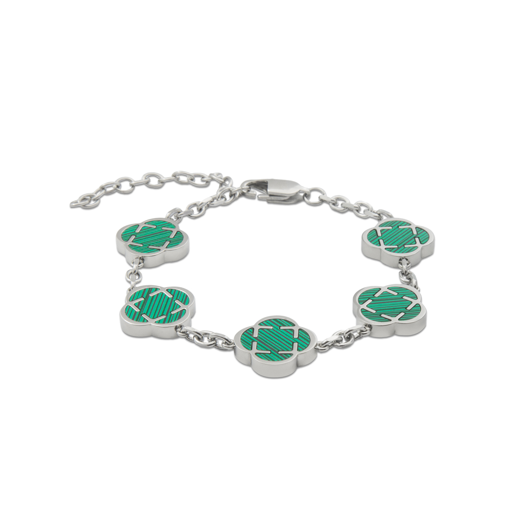 La Pulsera Trébol de Acero Inoxidable 316L – 10 Years Icon es una joya unisex llena de simbolismo y estilo. Diseñada con 5 tréboles incrustados con piedras de color, cada variante representa un valor único: verde suerte, rojo amor, negro paz y blanco vida. Fabricada en acero 316L hipoalergénico y resistente al agua, incluye una cadena extensora que permite adaptarla de talla S a L. Elegante y versátil, es la pulsera ideal para hombres y mujeres que buscan un accesorio significativo y duradero.