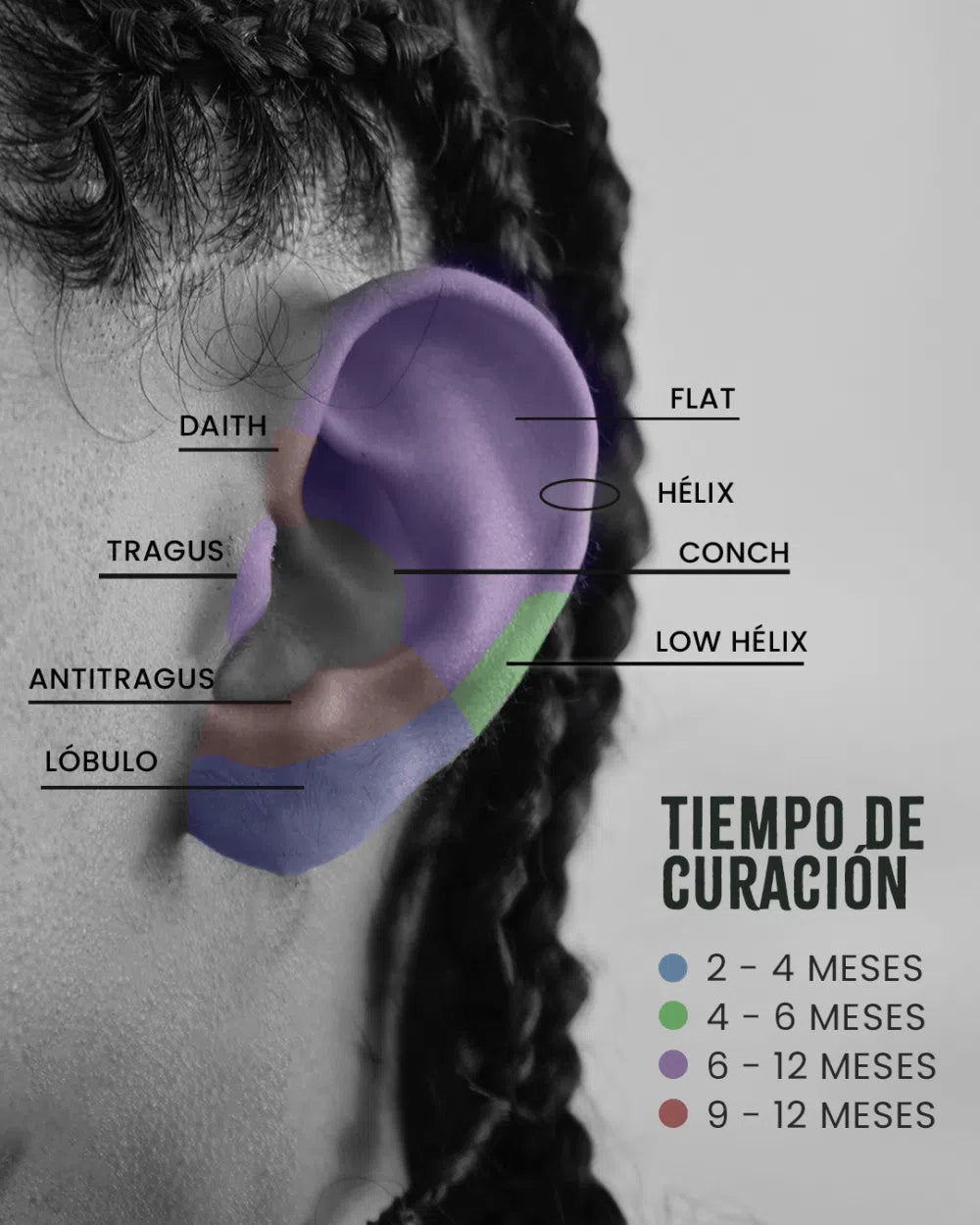 - No cambies el arete hasta que la zona esté completamente cicatrizada (esto puede tardar entre 6 y 8 semanas, dependiendo del tipo de perforación).